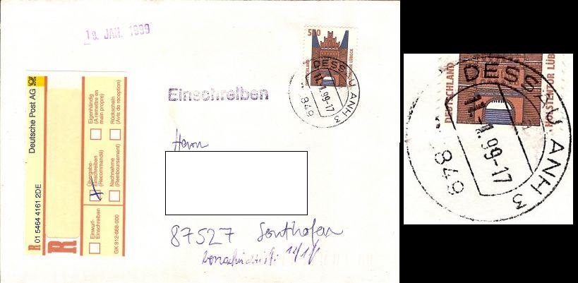 abgestempelt in Dessau Anh 3 am 11.01.1999.