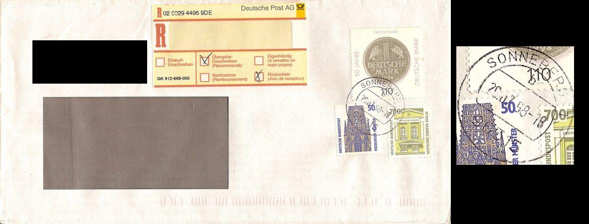 Noch ein Übergabe-Einschreiben, diesmal aus Sonneberg 1 abgestempelt am 29.07.1998