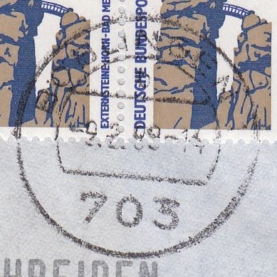 Die resultierende Portostufe von 670 Pf wurde dargestellt mit zwei 300 Pf Werten SWK sowie einem 70 Pf Wert B+S.