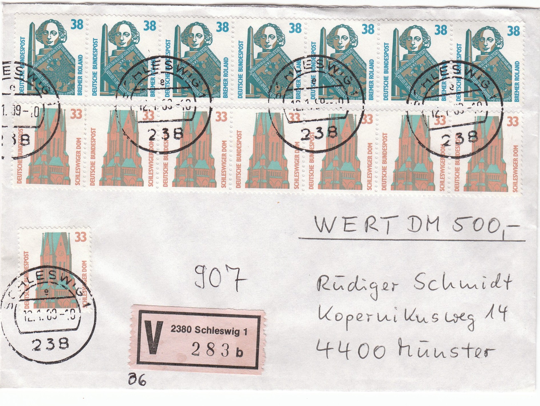 Hier für den Mai 1989 ein Wertbrief (500 Pf) der zweiten Gewichtsstufe (170 Pf).