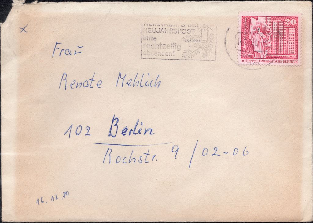 nach langer, langer, langer Zeit mal hier wieder ein Beleg. Ein einfacher Brief von Leipzig nach Berlin vom 14.12.1980.