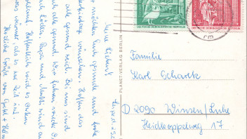 da in der Zeit vom 1.7.1971 bis 30.6.1990 die Bundesrepublik für die DDR als postalisches Ausland galt waren für eine einfache Postkarte 25 Pfennige nötig. Hier wurden am 26.3.1980 die Mi 1842 und Mi 1820 für die notwendige Frankatur von Leipzig nach Winsen an der Luhe verwendet.