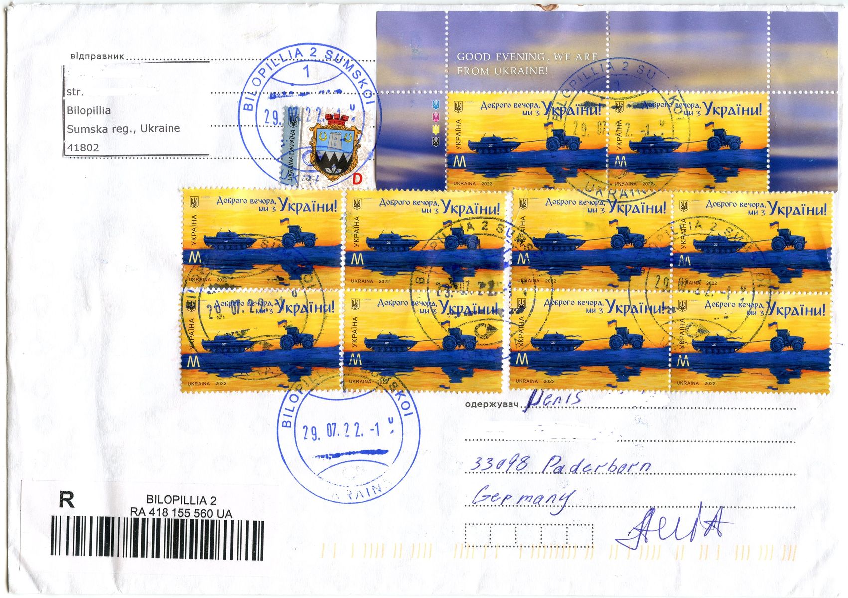 Noch eine Anmerkung zu den Aufklebern, diese tragwn ja die Werstufe W sind aber nicht frankaturgültig. Die Ukrainische Post macht das scheibar öfters, habe auch andere Marken als solche Frankturungültige Aufkleber gesehen.