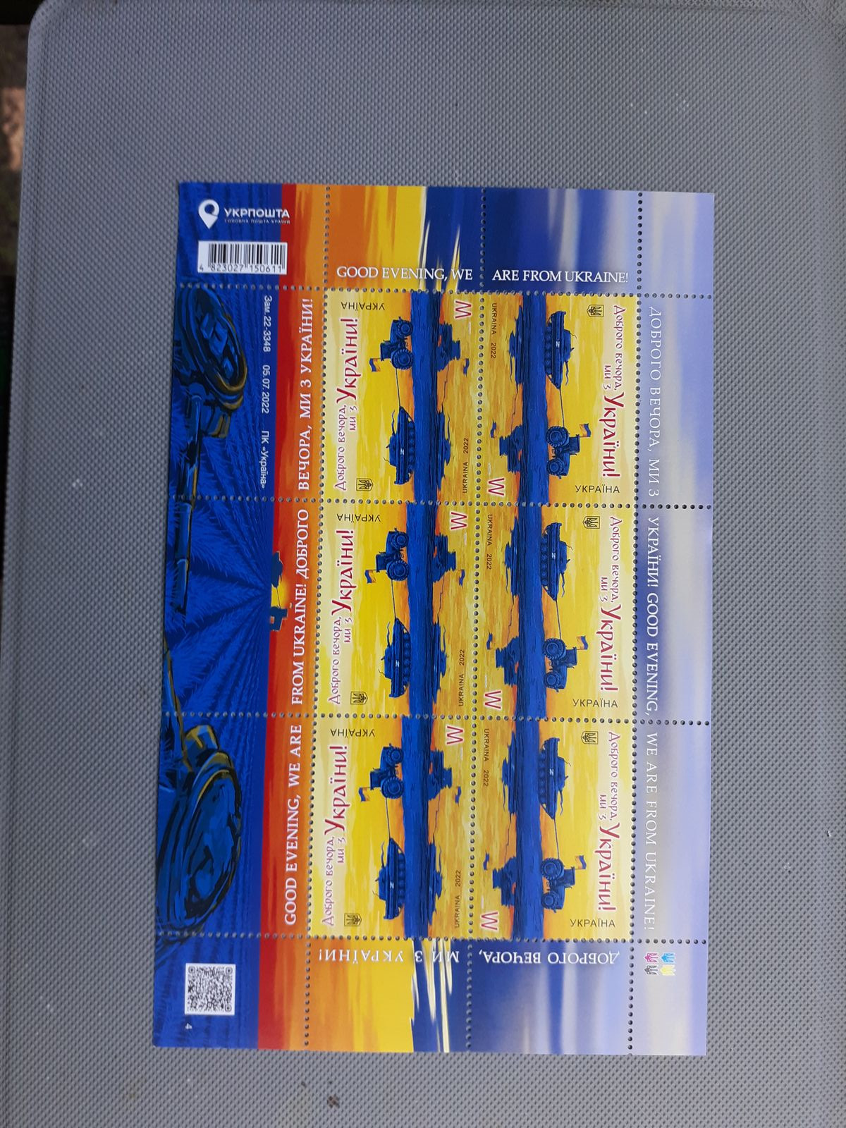 Und als drittes das 3. Motiv, Kleinbogen mit 6 Marken weltweiter Versand 329,10 UAH ca. 9 Euro, soweit ich weiß wird das aus 1,5 Dollar pro Marke errechnet.