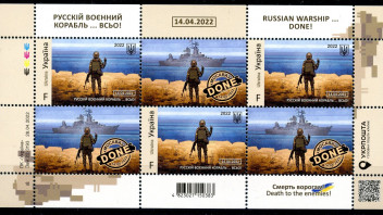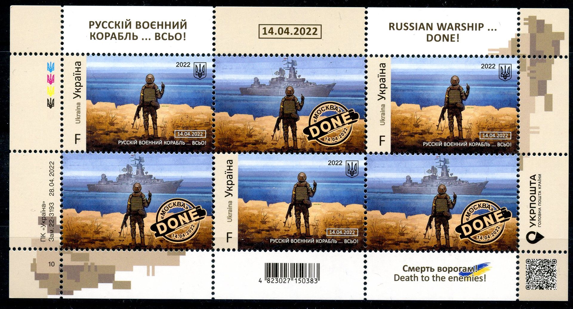 Und als drittes das 3. Motiv, Kleinbogen mit 6 Marken weltweiter Versand 329,10 UAH ca. 9 Euro, soweit ich weiß wird das aus 1,5 Dollar pro Marke errechnet.