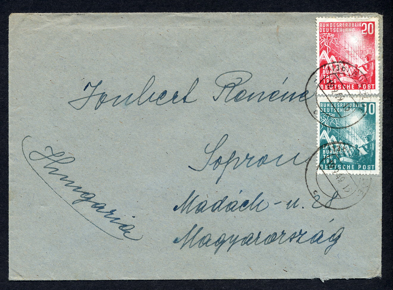Mein Lieblingsbeleg ist ein Auslands - Brief nach Ungarn portogerecht. Auf den ersten Blick nichts besonderes, aber es sind drei Plattenfehler auf den Marken. Bei der 111 I Punkt im T und Loch im Balken neben linkem Bein. Bei der 112 Haken am vorderen Dachfirst