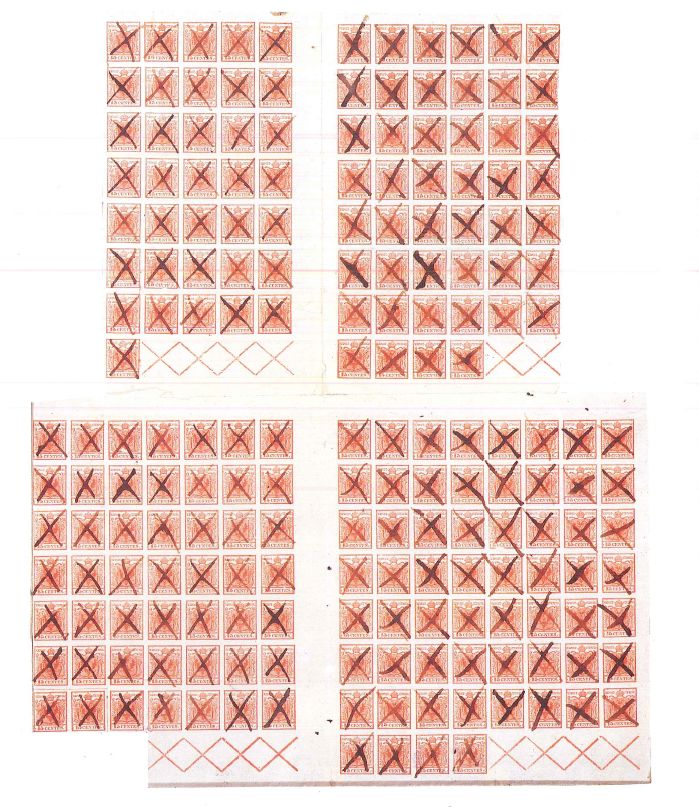 Hinsichtlich dieser Platten hat schon P.F. de Frank (1) richtig vermutet, dass die Typen der 15 Centesimi in zwei verschiedenen Platten vorkommen. Durch jahrelanger Zusammenarbeit vieler Sammler insbesondere den Herren F. de Hoffmann und C. J. Robertson ist es P. F. v. Stritzl (1898 - 1990) (2) gelungen wichtige Erkenntnisse zur Plattenforschung zu gewinnen, welche er in den 1970er und 1980er Jahren vereinzelt in diversen Fachartikeln veröffentlich hat.