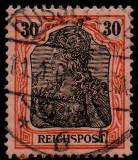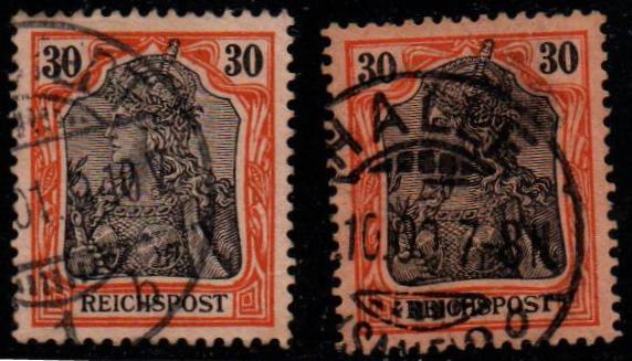 auch bei der 30 Pfg. Marke der Germania Reichspost Ausgabe wird nur eine Farbe katalogisiert: rötlichorange/rotschwarz auf mattgelblichorange. Selbst der Hinweis "Töne" fehlt hier.