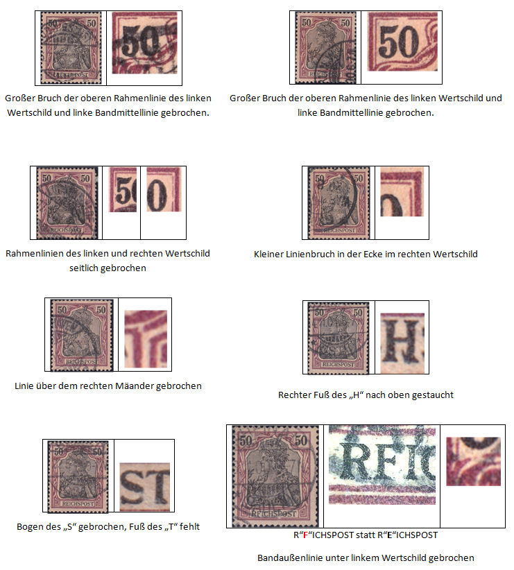 einige Plattenfehler von der Schwarzdruckplatte, die im Knop`schen Handbuch aufgeführt sind.