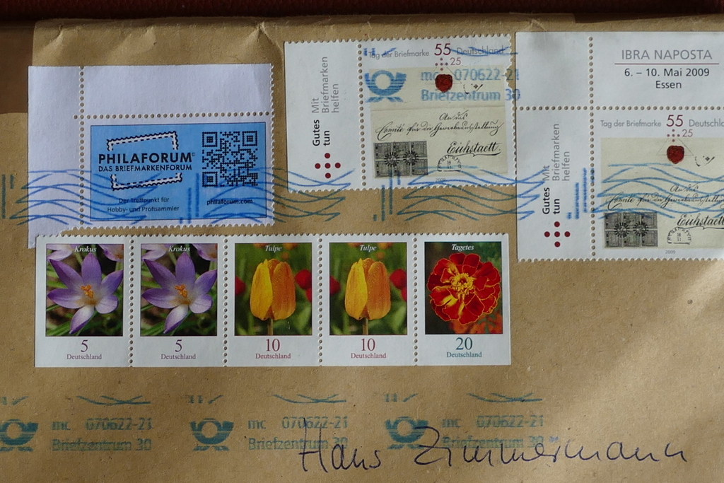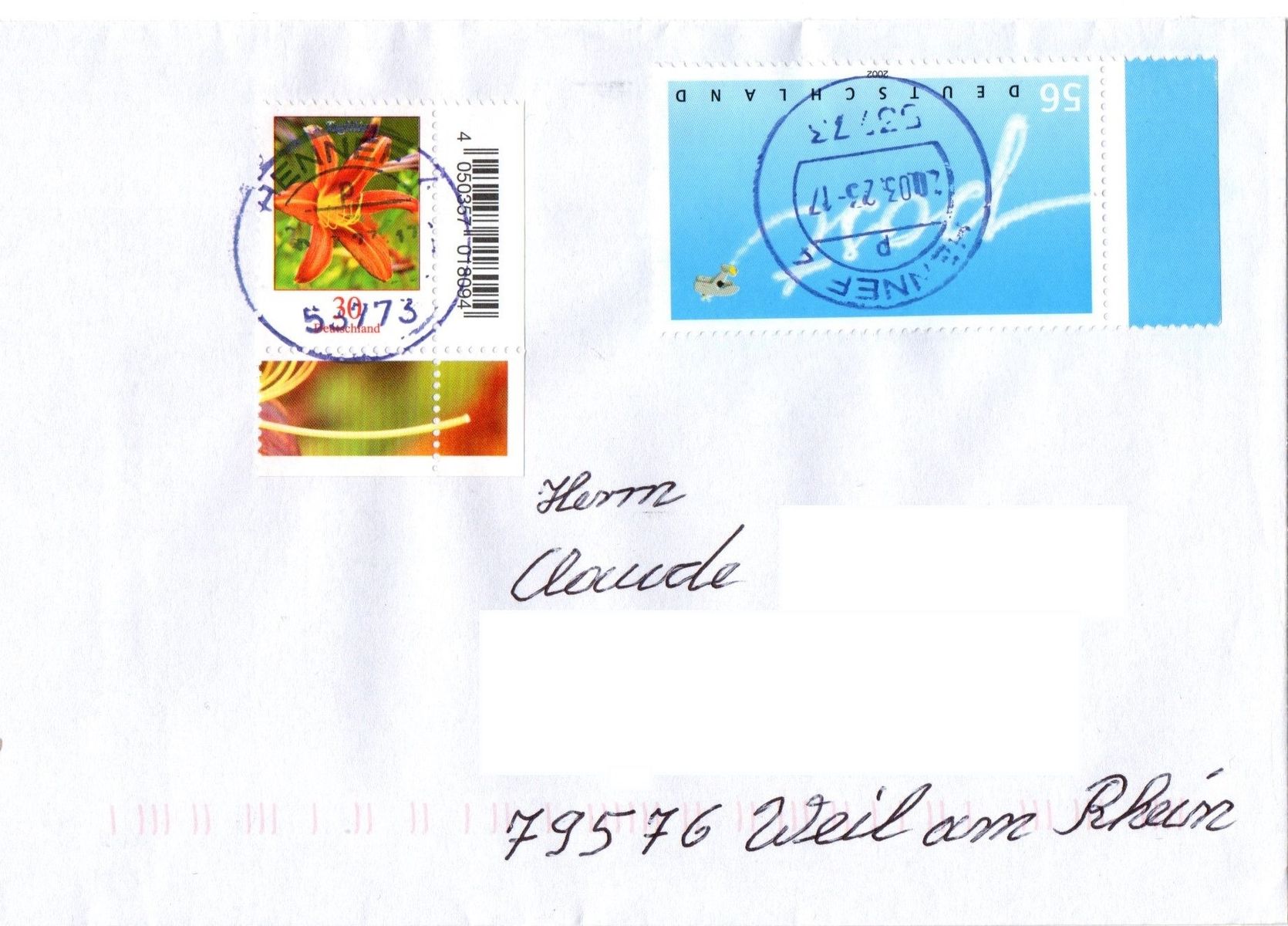 Habe heute diesen eigentlich nicht besonderen Brief erhalten. Bis mir aufgefallen, dass der Postbeamte sich die Mühe gemacht hat, den Stempel einmal um 180 Grad zu drehen, damit er korrekt zur Position der jeweiligen Briefmarke steht! Manchmal muss man die Post einfach doch loben.
