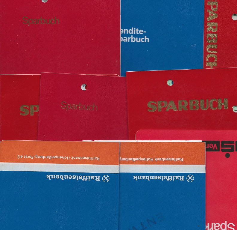 Dieses Sparbuch (ziemlich geplündert) geriet allmählich in Vergessenheit; konnte man doch mit EC-Card und Credit-Card weltweit leicht Alles bezahlen.