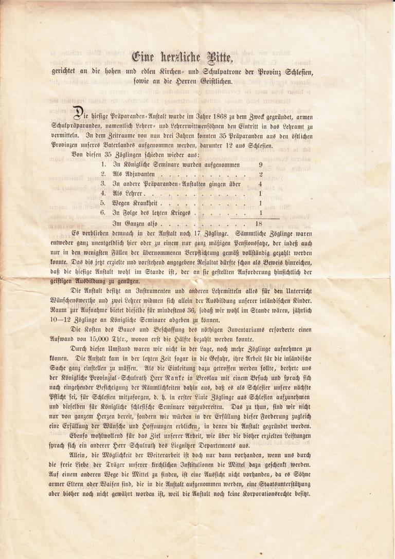 ein etwas fleckiger Drucksachenfaltbrief, portogerecht frankiert mit einer 1/3 Groschenmarke, von Kuhnern in Schlesien an das hocherwürdige evangelische Pfarramt in Meffersdorf.