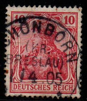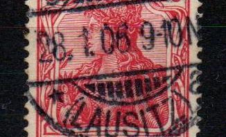 normalerweise weisen die roten 10 Pfennig Marken das größte Farbspektrum aller Marken der jeweiligen Ausgabe auf. Nicht so bei der Germania-Ausgabe ohne Wasserzeichen. Hier katalogisiert der Michel nur eine Farb(familie): lebhaftrotkarmin bis rötlichkarmin (viele UV-Unterschiede)