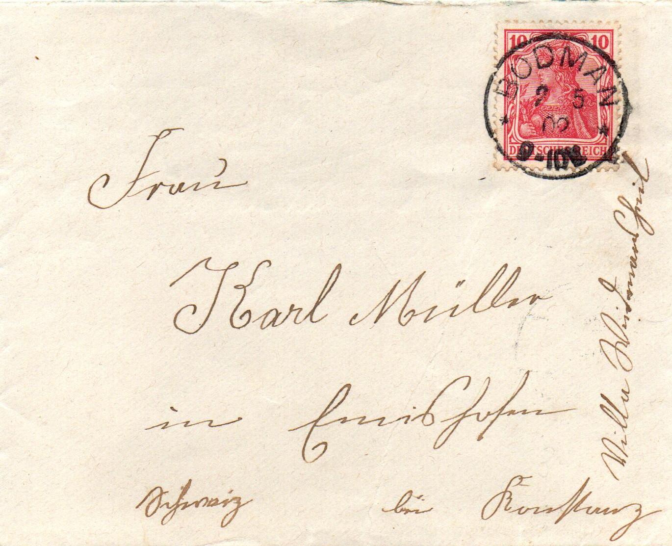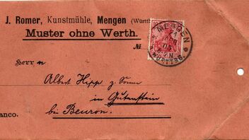 Ich beschränke mich auf eine Spätverwendung aus dem Jahr 1906. Bei meinen Dubletten fand ich zwar ebenfalls unterschiedliche Farbtöne (bei Tageslicht), eingescant waren dann kaum noch Unterschiede erkennbar).