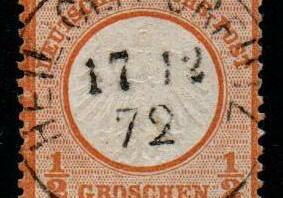 "Die Änderung der Farbe wurde angeordnet, weil die (orange)roten Marken No. 3 und No. 8 bei Abendbeleuchtung von den Postbeamten mit den (karmin)roten No. 4 und No.9 verwechselt wurden"
