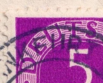 Der im Jahr 2010 von Dreyer-Schlegel mindestens 5x vorhandene und auf Feld 4 veortete PF - Punkt rechts im O von POST mit Delle unten rechts im Bildrahmen - hier nur mit "beginnender" Delle