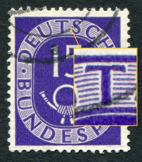 heute komme ich zur MiNr 903, bei der viele Flecken der braunen Farbe (aber auch anderer Farben) bekannt sind. Bei meinem nun vorzustellendem Exemplar dachte ich zuerst, dass da jemand drauf gefrühstückt hat. Dann fiel mir auf, dass die Farbe mit der Markenfarbe übereinstimmt.