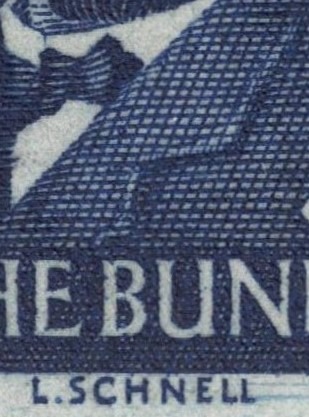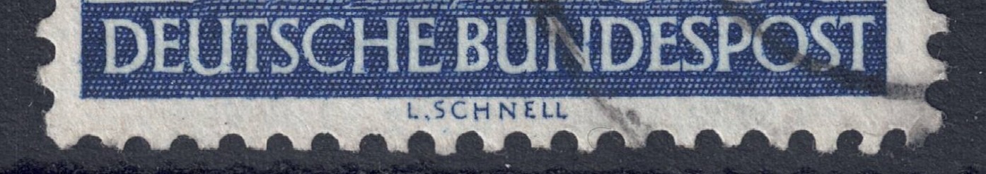 Innen rechts "rundes" D von DEUTSCHE - unten im Bogen (nachträglich ?) geschlossenes B von BUNDES
