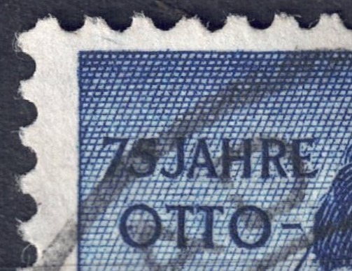 Die vor gezeigte Marke dieser Nummer halte ich für ein schönes Vergleichsbespiel für die angestrebte (mehrfache) untere Flucht der blau gehaltenen Schriftzüge 75 JAHRE OTTO - MOTOR.