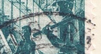 Weitere Druckabweichung - weiße Wolke unten rechtes Bein links, rechter Arbeiter