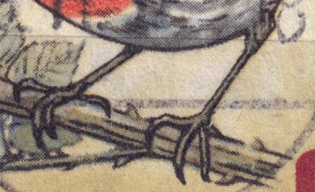 Mich bewegt zur dieser Annahme DD, daß z.B. der versetzte Streifen mit schwarzer Hintergrundrasterung (dort für Herstellung Oliv) über dem Kopf breiter als die hierfür vorgesehene, darunterliegende schwarz abgegrenzte Lücke ist. Das Orange ist deckender sowie das unterlegte Schwarz im z.B. orangenfarbenen Gefieder ist voller / doppelt minimal nebeneinander vorhanden.