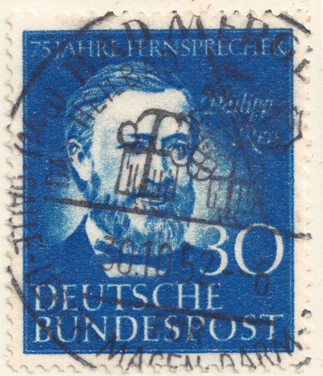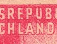 Kerbe im Rahmen rechts, roter Strich im T von POST - Mittelstrich H von DEUTSCHE unregelmäßig