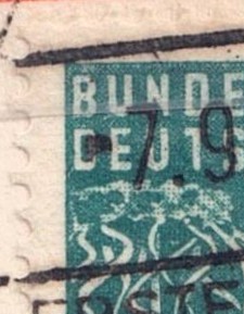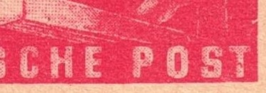 Kerbe im Rahmen rechts, roter Strich im T von POST - Mittelstrich H von DEUTSCHE unregelmäßig