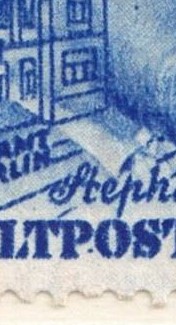 Bund 116 - Punkt zwischen PO von WELTPOST + feiner Strich über 2/3 des Oberrandes - nach Dr. D. 49-06-016 Feld 22 Bogen a