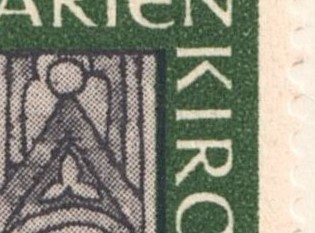 Druckabweichung - weißer Punkt links unten am rechten Fuß des "R" in "KIRCHE" - PF I Feld 4 Teilauflage