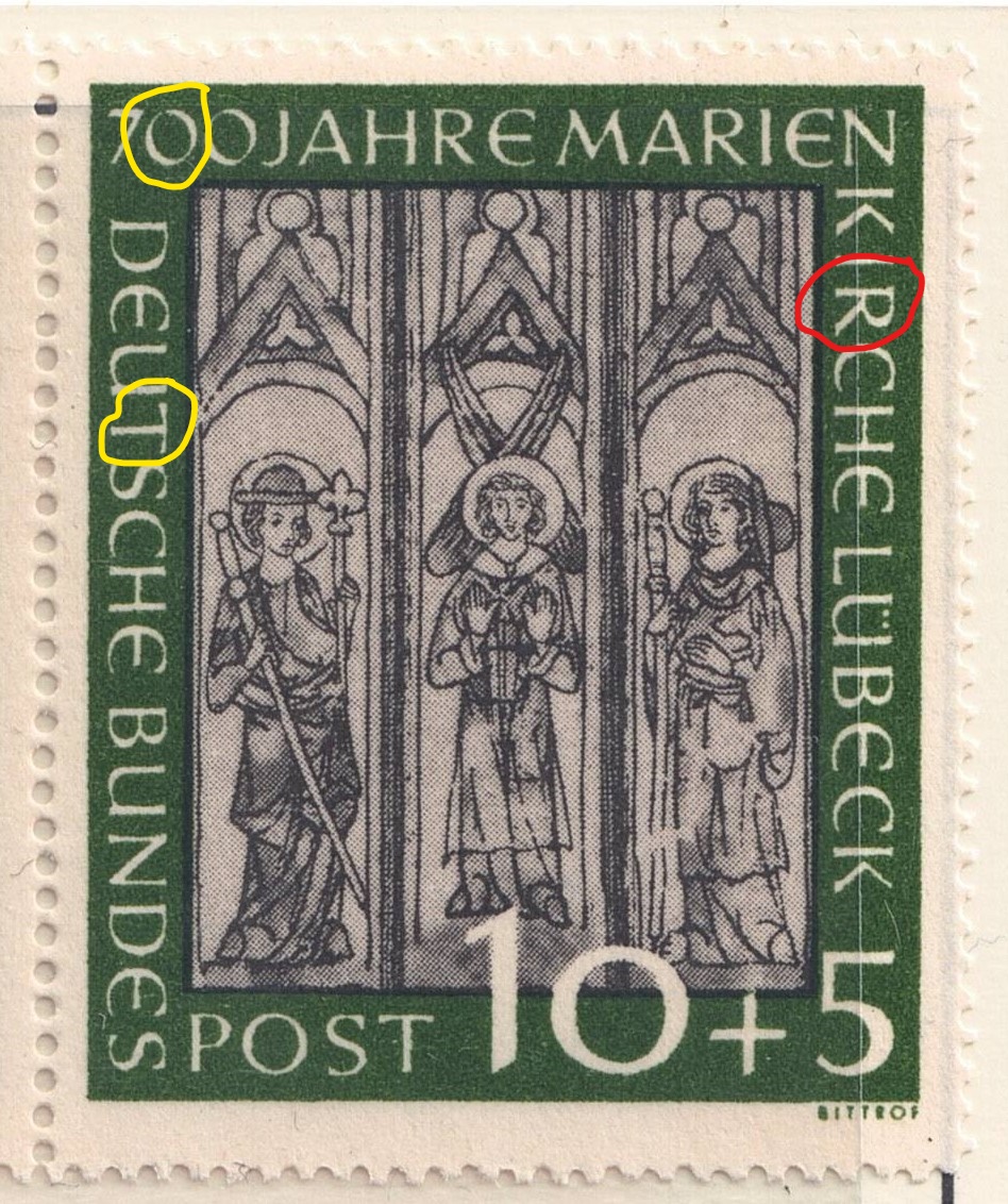 Das gilt m.E. für fast alle von Dr. Dreyer so trival beschriebenen "Plattenfehler" / Druckabweichungen der ersten 6 Briefmarken der BRD ;)
