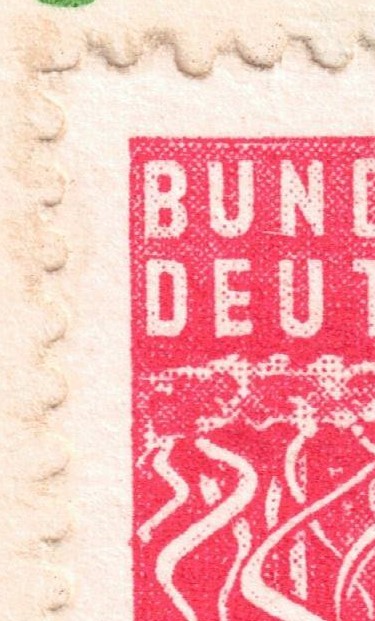 Rote Einkerbung im T von DEUTSCHE zeichnet sich im Scan Bogenwiki wohl nur ab.