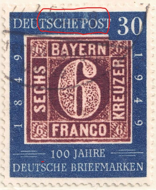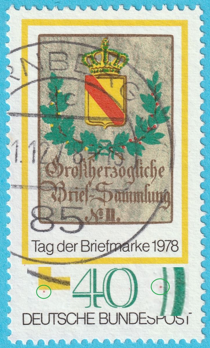 2. Farbspritzer (rot) links im Rand neben dem zweiten S von BUNDESPOST.