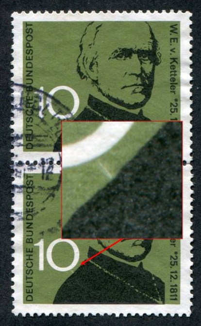 bei der MiNr 374 ist mir ein weißer Strich zwischen der Null und der Schulter aufgefallen: