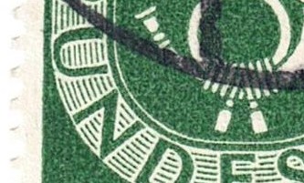 Auf meiner Marke gibt es noch weitere Striche und Punkte (z.B. oben am R oder im Unterrand).