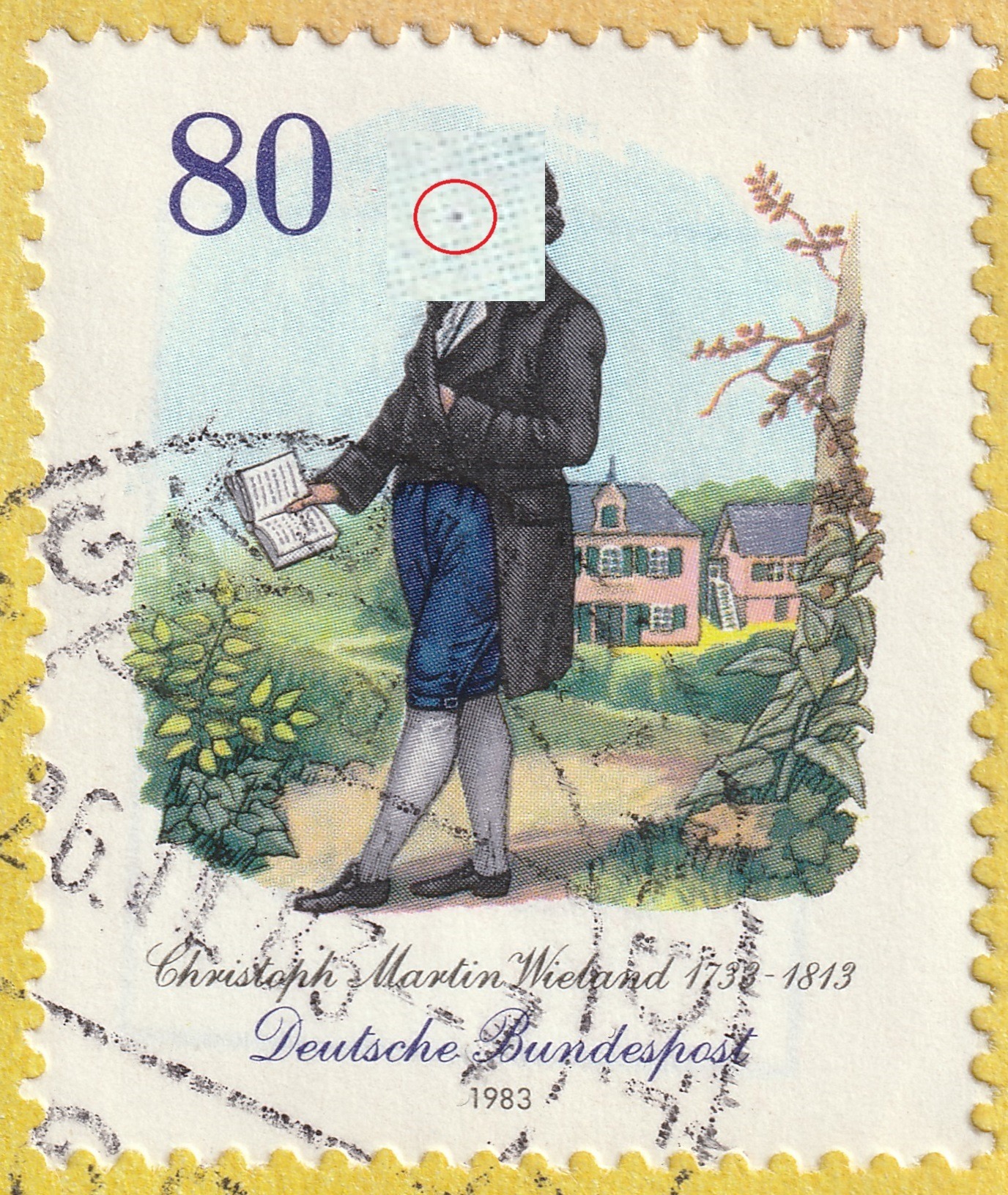 nun komme ich zu den fehlerträchtigen Gemälde-Marken aus den 70ern. Bei der MiNr 815 starte ich mit einer Abweichung, die auch bei Philotax registriert ist.