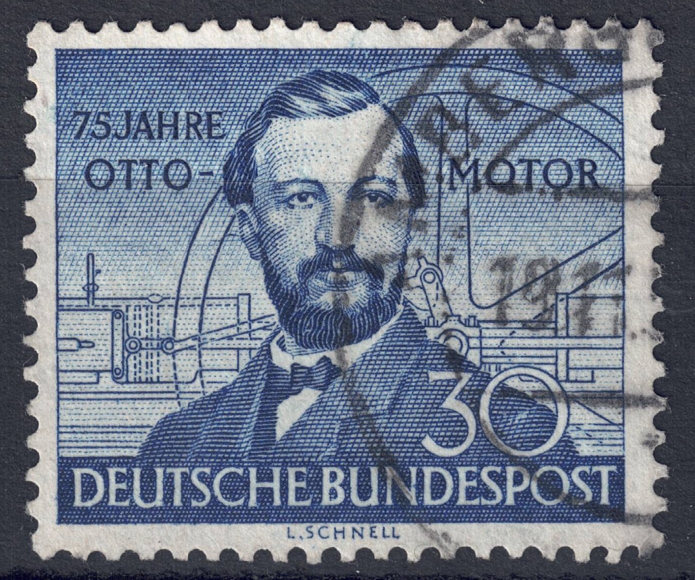 Die vor gezeigte Marke dieser Nummer halte ich für ein schönes Vergleichsbespiel für die angestrebte (mehrfache) untere Flucht der blau gehaltenen Schriftzüge 75 JAHRE OTTO - MOTOR.