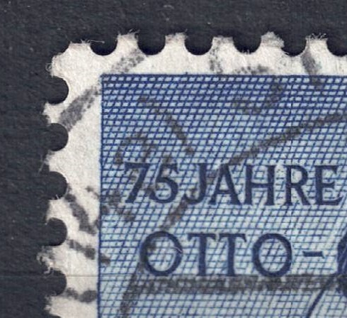 Weiterhin bei dieser 148 ist die gleichmäßig etwas nach oben und links versetzte Zähnung. Bild nicht zentrisch auf Marke.