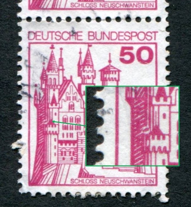 EDIT: Suche gerade meinen Stechzirkel um mal die Außenmaße der jeweiligen Marke abzugreifen und abzugleichen. Steht das Bild der linken Marke, etwas gekippt zur Zähnung? Ist die rechte Marke eingelaufen / die linke Marke gestreckt?Rätselnde Grüße