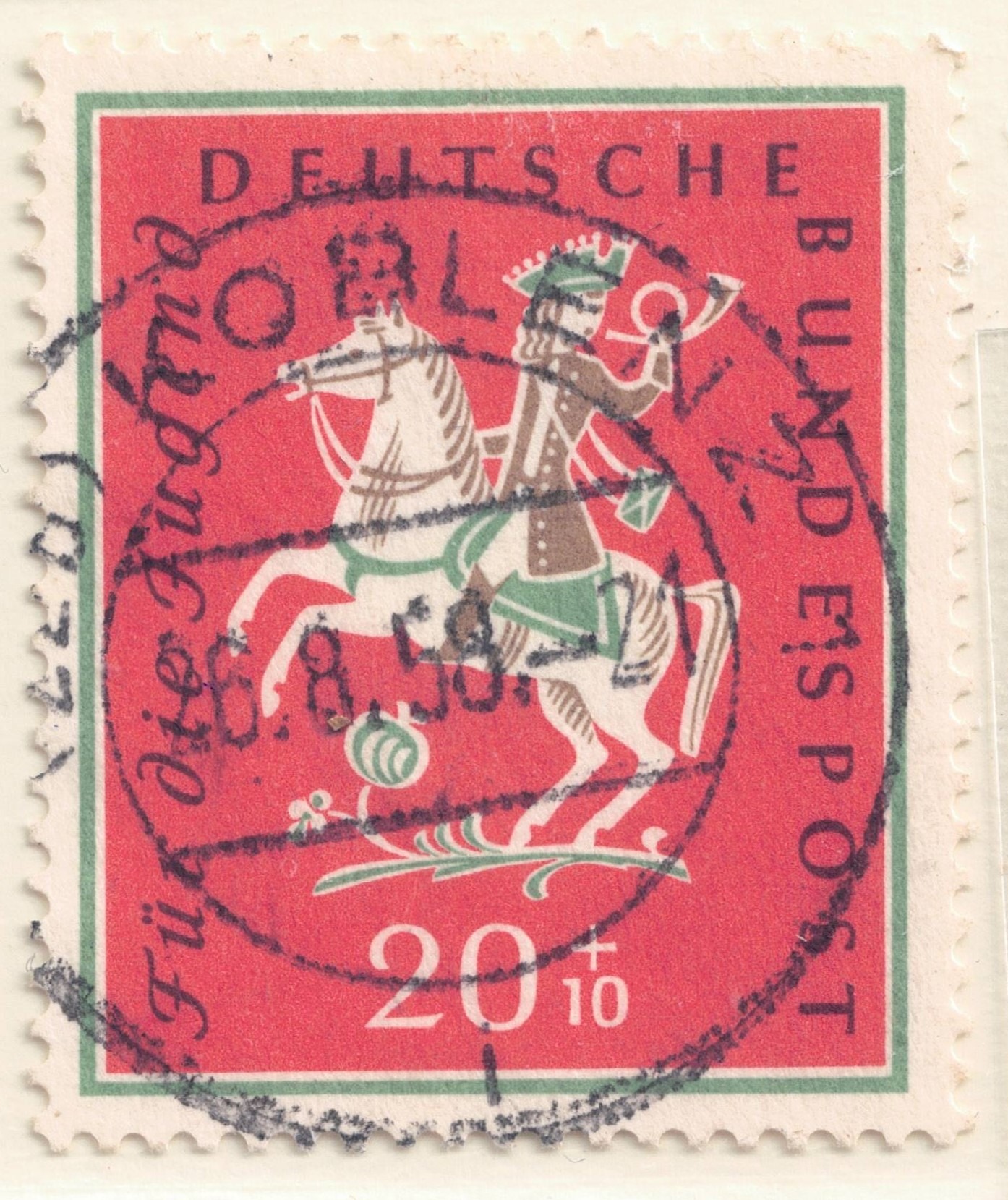 Auch diese weiße "Bügge" (wird das so genannt?) quer über das Markenbild, ist meiner Ansicht nach durch das brechen des Gummis über eine Metallkante entstanden. Besonders bei Beiträgen über Bund 478 und den teilweise durchaus deutlichen Biegekanten dieser, immer gerne Thema.