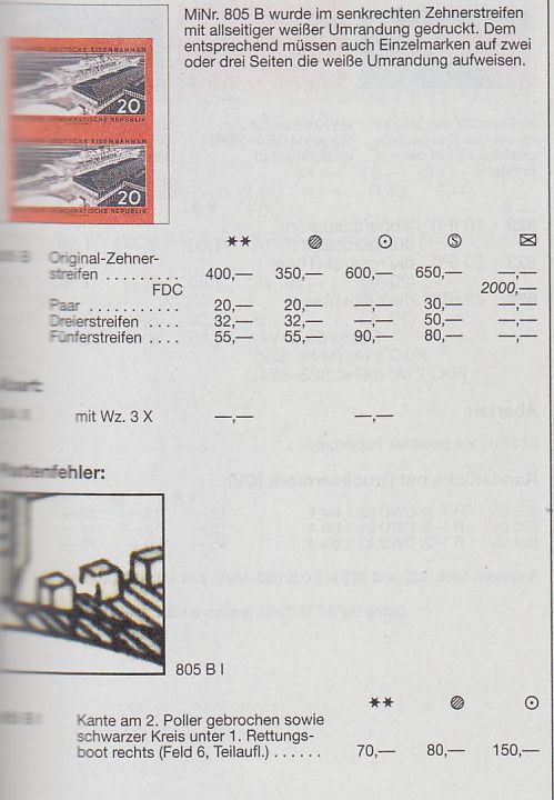 Mittlerweile habe ich in meiner Sammlung einige Zehnerstreifen dieser Ausgabe. Jedoch ist der im Michel als 805 B I aufgeführte Fehler dort nicht noch einmal enthalten.