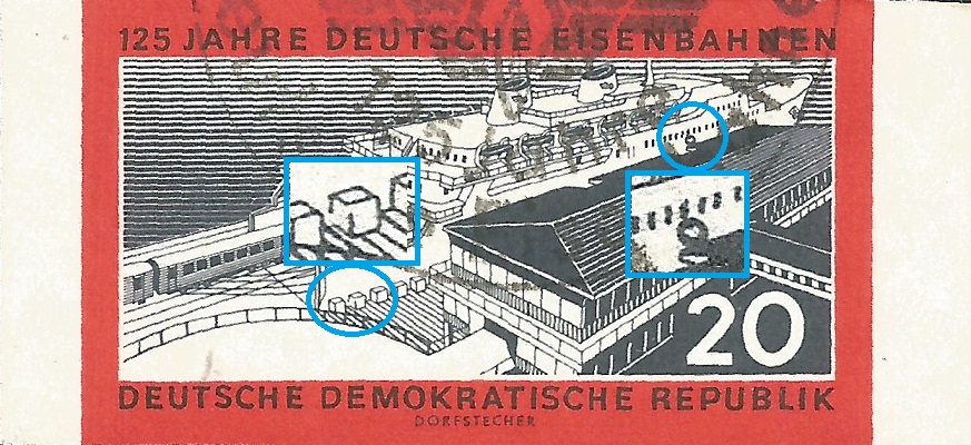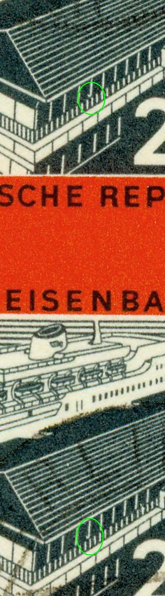 Leider fehlt auch hier das Bild des "Rettungsringes", einzig der "gebrochene 2. Poller" ist hier dargestellt. Von diesem Fehler liegt mir ein Zehnerstreifen vor, hier auf meiner Albumseite: