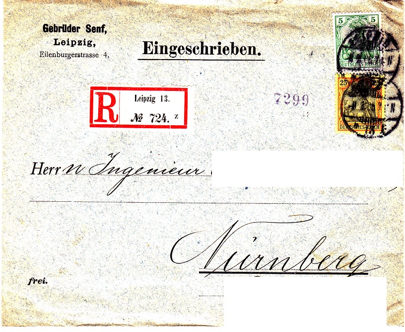 Einschreiben aus 1905 nach Nürnberg Vorderseite und