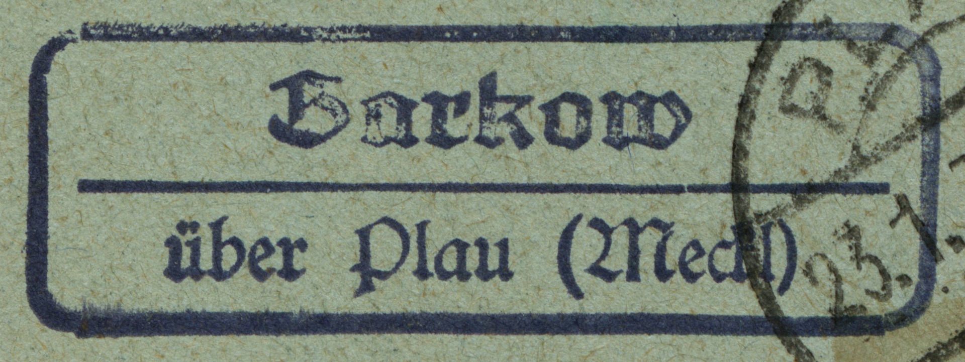 Stempelabschlag der Poststelle II Barkow vom 23. Januar 1935. Verwendet wurde ein Rechteckstempel mit abgerundeten Ecken und Strich in Frakturkschrift.