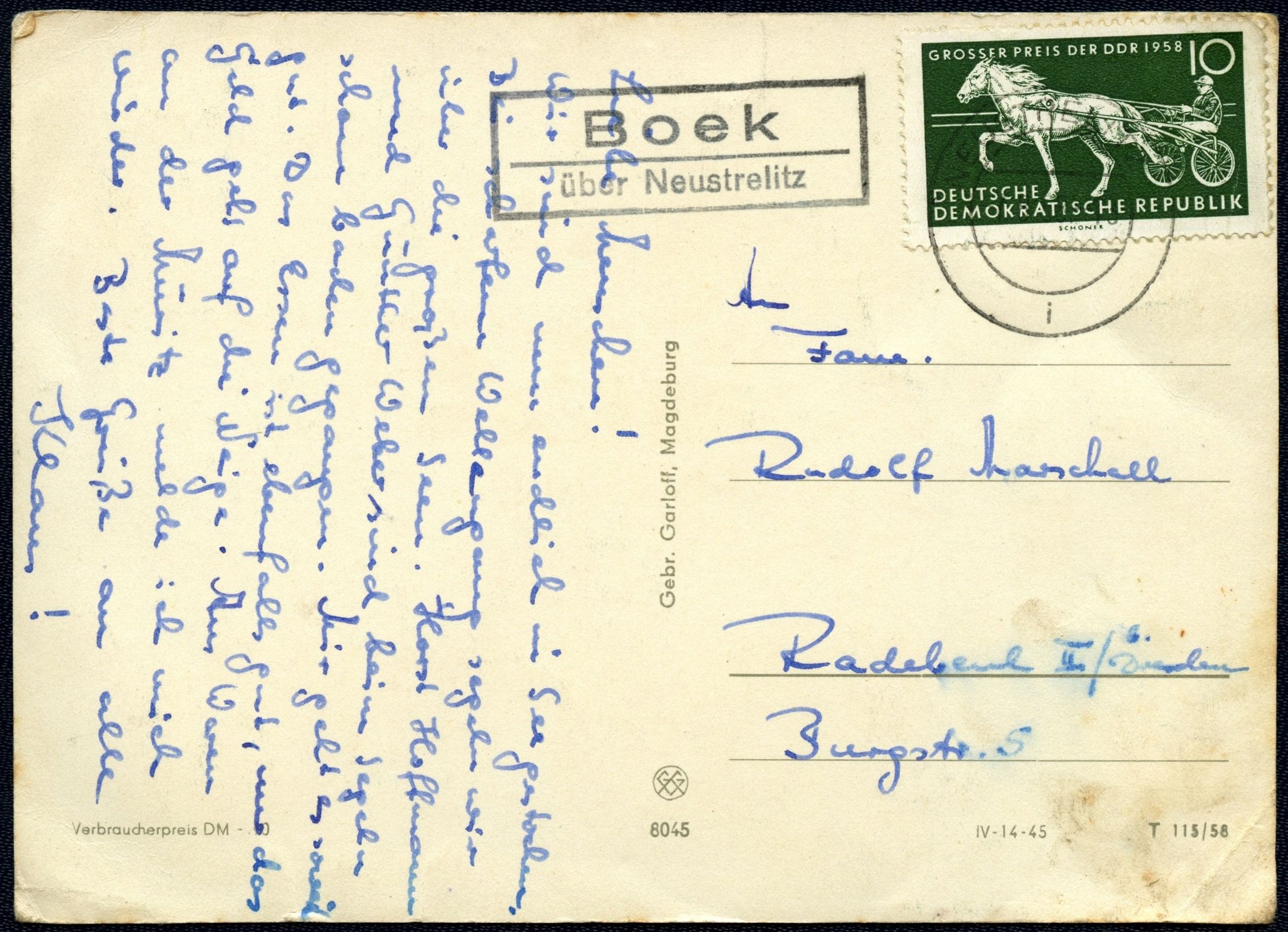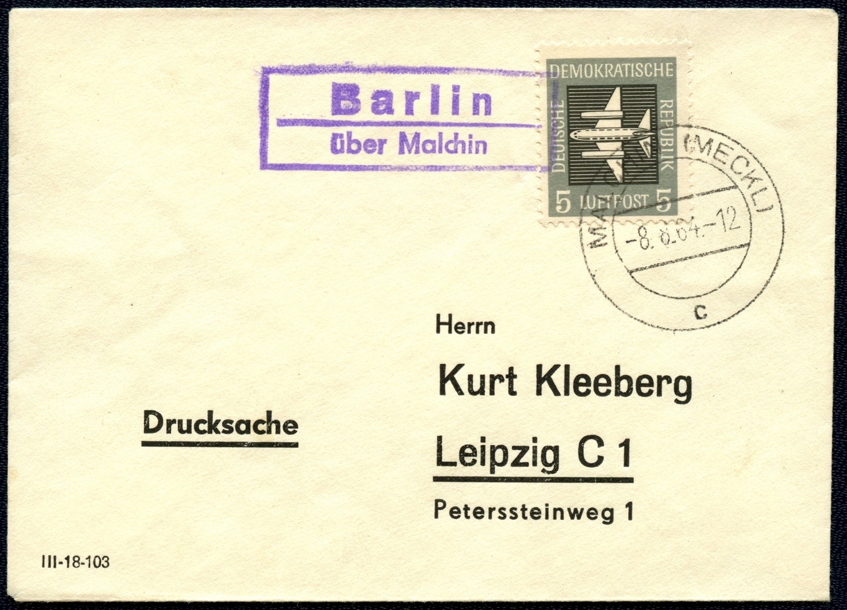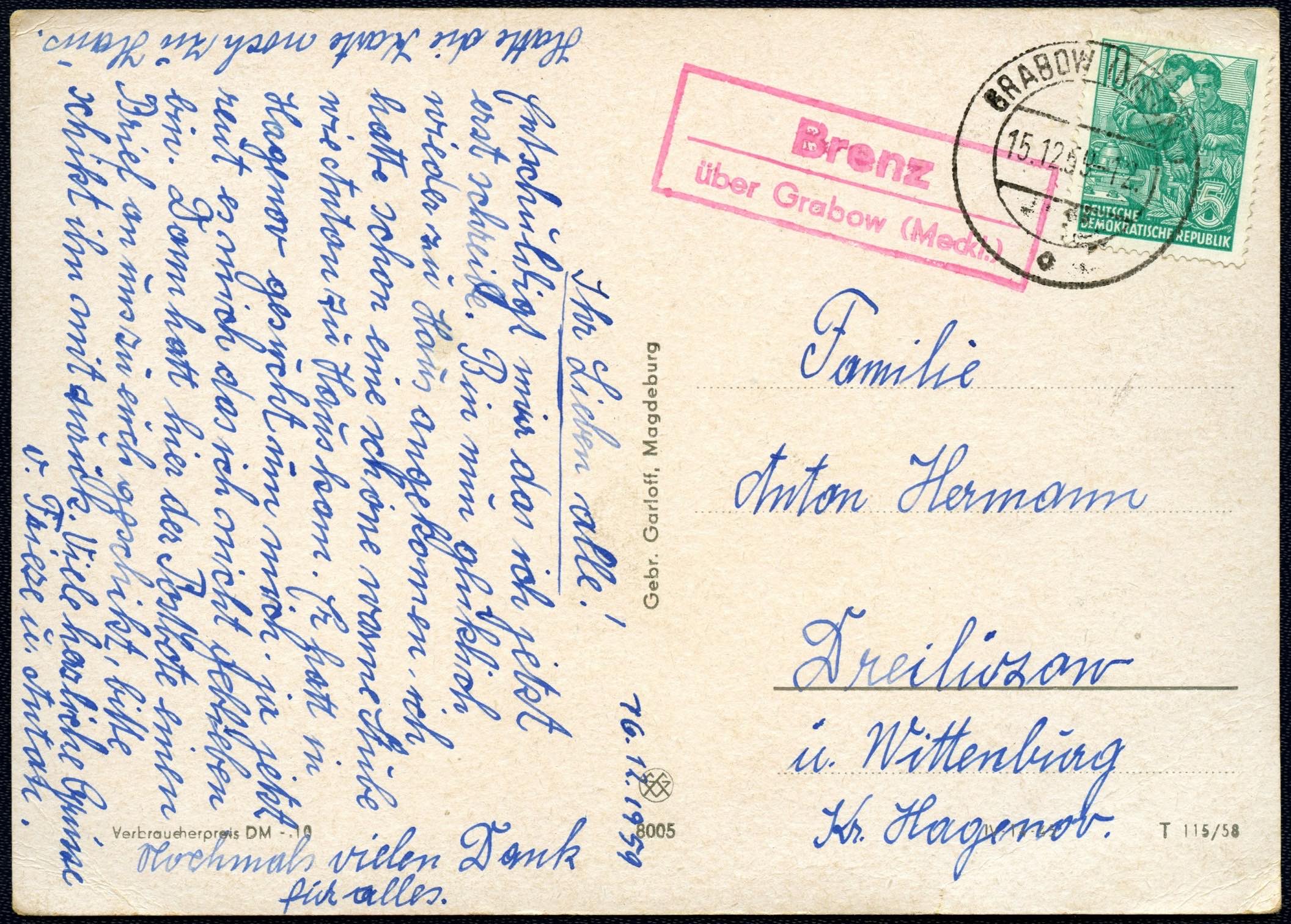 Stempelabschlag der Poststelle II Bäbelin, wahrscheinlich in den 1960iger Jahren verwendet (siehe Druckvermerk der Ansichtskarte und das Stempelgerät von Wismar). Verwendet wurde ein zweizeiliger Rechteckstempel in der Schriftart Grotesk.