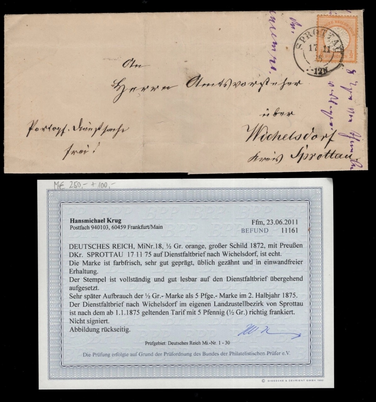 Heute die 1/2 Groschen-Marke mit großem Brustschild. Sie wurde, wie auch die anderen Marken dieser Ausgabe, am 1.6.1872 herausgegeben. Der Michel nennt als Farben orange bis gelblichorange. rabege zeigt in der PHILA-DB beide Farbtöne: http://www.philadb.com/?site=list&catid=&catuid=480&id=576