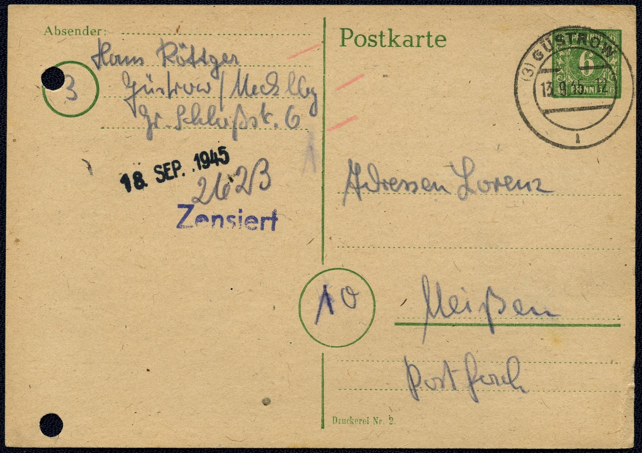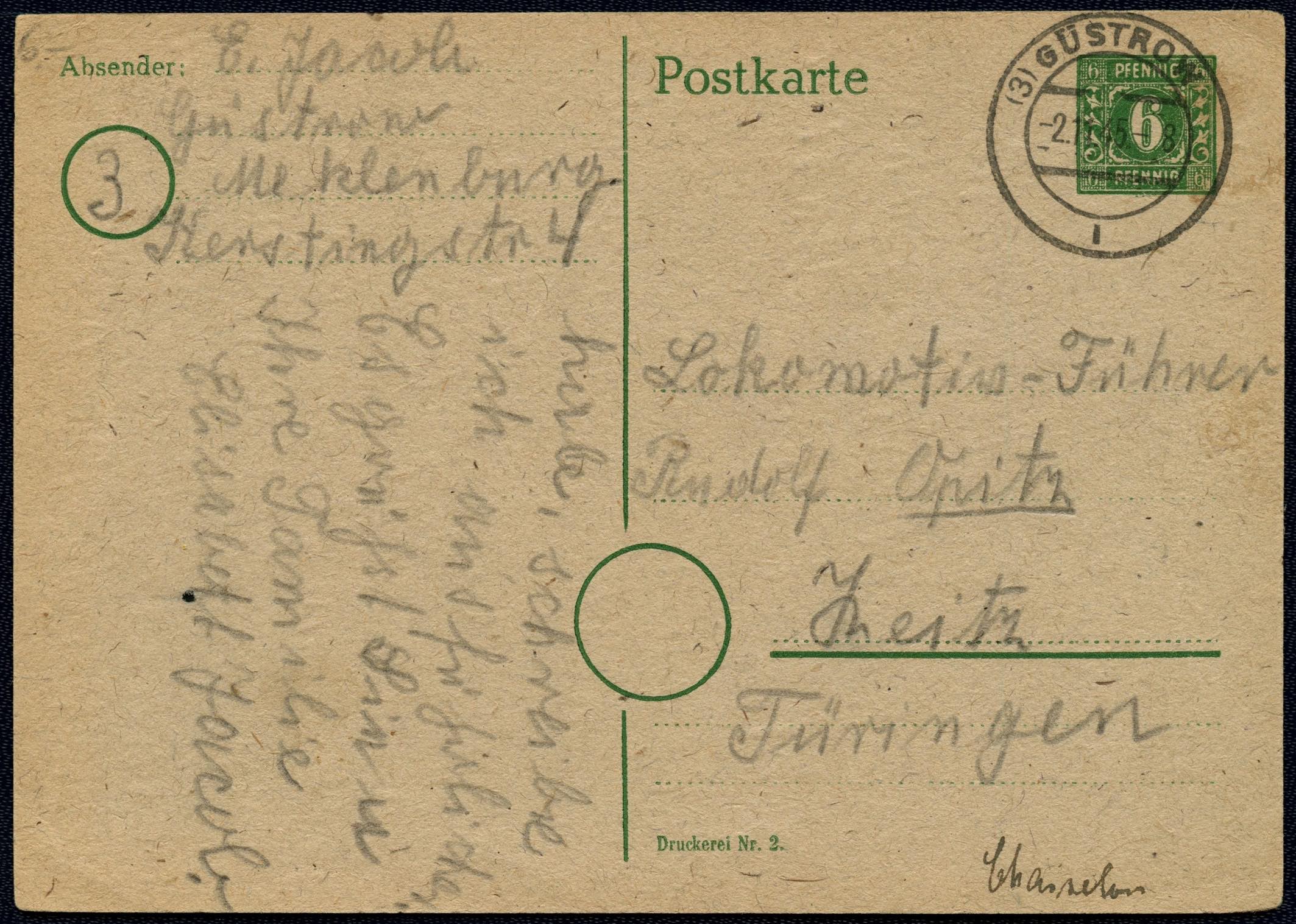 Ziel dieses Themas ist es, Belege des Postamtes Güstrow 1 bis zur Auflösung der OPD Schwerin am 31.12.1952 zu zeigen.