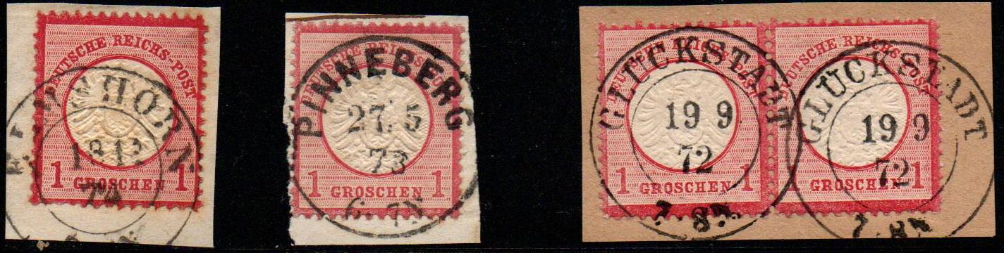 heute beginne ich mit der 1 Groschen Marke mit großem Brustschild. Der Michel nennt folgende Farbtöne: (lebhaft)rotkarmin, karmin