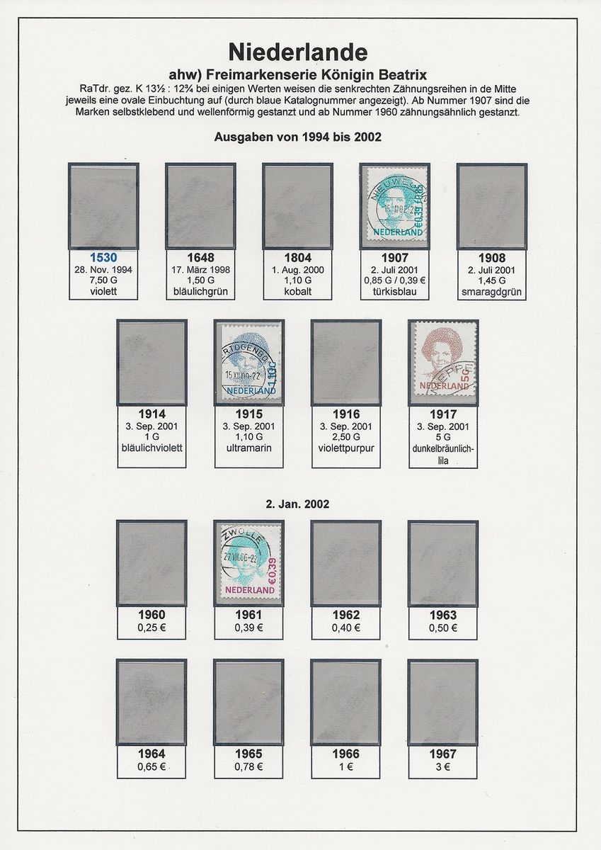 Ich hab trotzdem den Mut zur Lücke. Die Albumseite sieht aber nicht sehr gut gefüllt aus. Gibt es dafür einen Grund, dass NL-Freimarken so schwer zu finden sind?