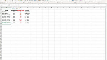 Die Datei wird in eine Excel-Datei importiert. Diese muss man jetzt noch manuell bearbeiten und die nicht benötigten Zellen löschen, weil hier sämtliche Informationsangaben, die man bei Stecotec eingeben kann, aufgeführt werden. Am Ende sieht dann meine Fehlliste so aus