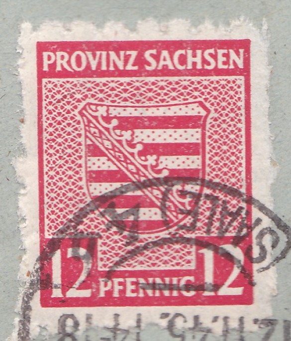 Die Besonderheit an dieser Mi 71 besteht darin, dass es sich wahrscheinlich um eine Postmeistertrennung handelt. Ich würde die Marke als eine Mi 71XD einordnen. Dagegen spricht, dass der Abschlag des Beleges nicht in Halle 8, sondern in Halle 4 erfolgte. Es könnte sich daher auch um eine Privattrennung handeln, umso mehr da der Absender ein Stromversorger ist, Stromversorger haben einen hohen Umsatz an Geschäftspost und könnten eigene Trenntechniken eingesetzt haben.